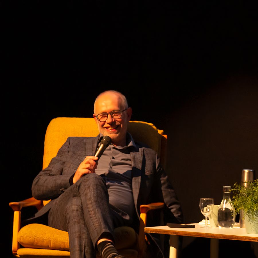 Simone Milsdochter: En zoals een acteur vanuit de coulisse, zo verschijnt Wim, een uur voor aanvang, vanachter het valse muurtje. En met zachte stem en even zachte glimlach, zegt hij: - nu al bijna dertig jaar - ‘Simone, fijn dat je er bent!’ - Over ‘thuis zijn’ gesproken.