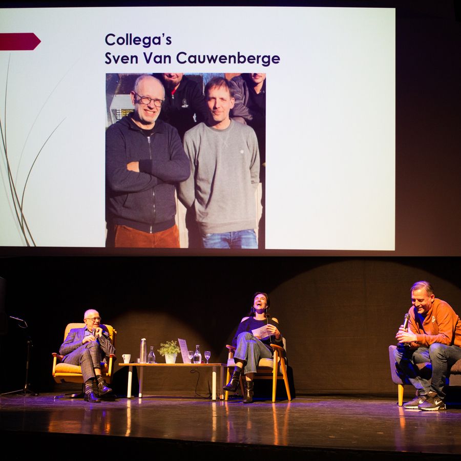 Verschillende mensen kwamen langs op het podium om Wim te eren, anecdotes op te halen, zijn levenswerk te schetsen of een ode te brengen. Els Leysen, was jarenlang de inleider van de theatervoorstellingen, zij bracht de inleiding van deze avond. Vervolgens kwam Sophie Van Weert vertellen over de samenwerking met Cc Strombeek en hoe het was om met Wim samen te werken. Lies Van Lierde vertelde over de hoogtepunten in de carrière, want zij stond van in de beginjaren als collega-programmator naast Wim. Elisabeth Maesen vertelde hoe het was om in zijn voetsporen te treden, eerst bij het project Stoep & Drempel en nadien als programmator voor het familieaanbod. Sven Van Cauwenberghe bracht het verhaal van Wim als jongerenwerker en als teamlid van Team Jongeren in de laatste jaren van zijn loopbaan.