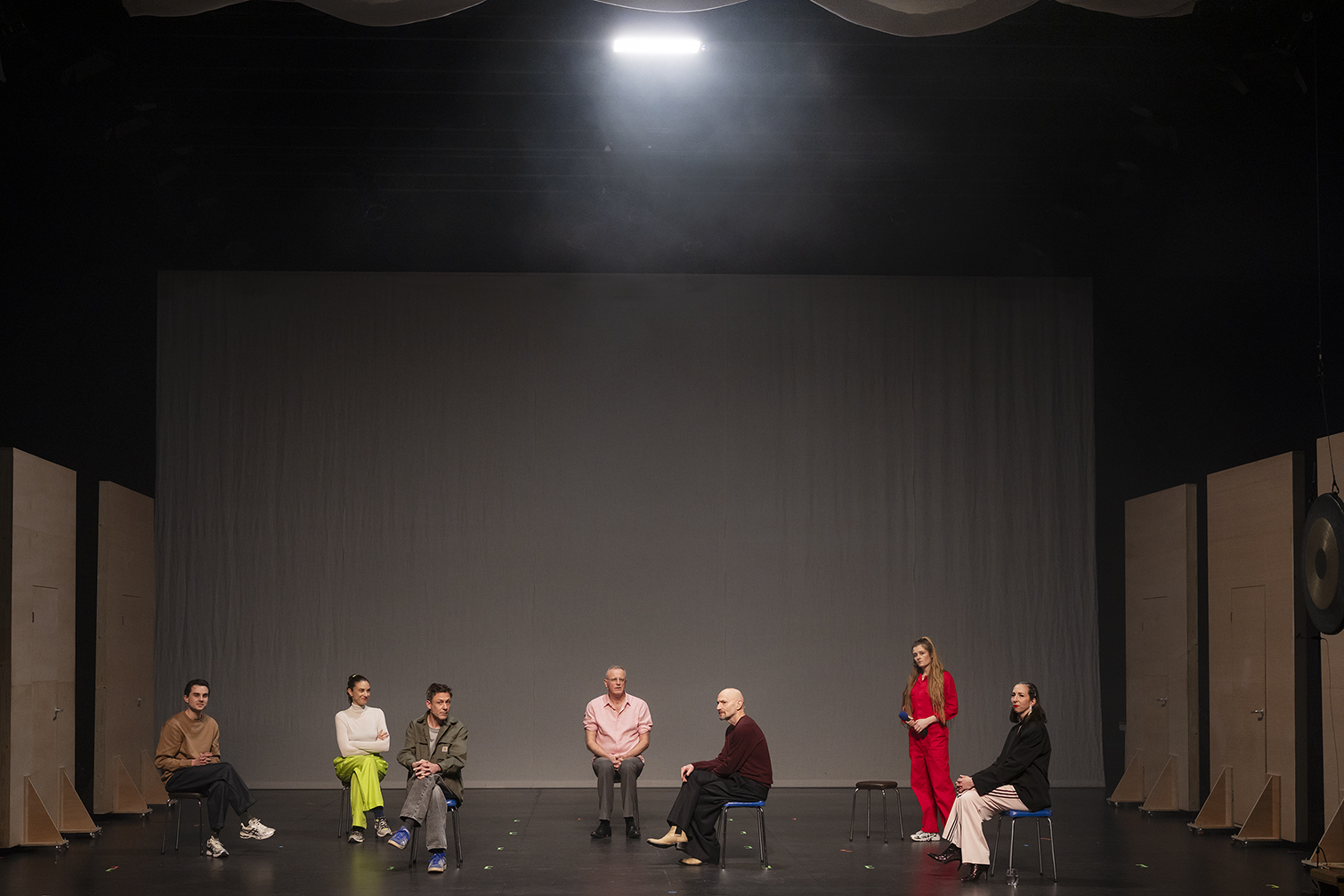 Wannes: “We benadrukken dat soms te weinig, vind ik: we werken altijd en overal horizontaal, ad nauseam maken we onze voorstellingen zonder hiërarchie. Daarnaast vertrekken we altijd van het lege blad. Dat zorgt ervoor dat de weg naar een voorstelling lang en intens is. Als we als groep goed naar elkaar luisteren, ontstaan er geweldige dingen, maar het proces blijft complex.”
