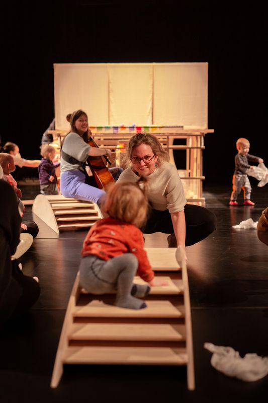 Manta is geen spektakel voor baby’s. Het is ook geen spektakel, trouwens… Manta, dat zijn momenten met diepe zintuiglijke ervaringen voor de allerkleinsten, maar ook voor de groteren die hen begeleiden. Tijdloze tijd, oneindige vrijheid. Niets is opgelegd, alles is voorgesteld.