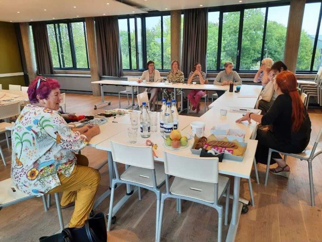 Zomer 2024, Theater Aan Zee. Tussen twee voorstellingen neem ik de tijd om even in het park rond te kuieren langsheen de installaties voor gezinnen. Mijn aandacht wordt getrokken door een lange tafel: vrouwen zitten er te naaien, bezoekers komen en gaan met kledingstukken, en raken in gesprek. Ik blijf staan bij STIL-LEVEN, een participatief project van textielkunstenaar Saar Swinters voor Cultuurcentrum De Grote Post.