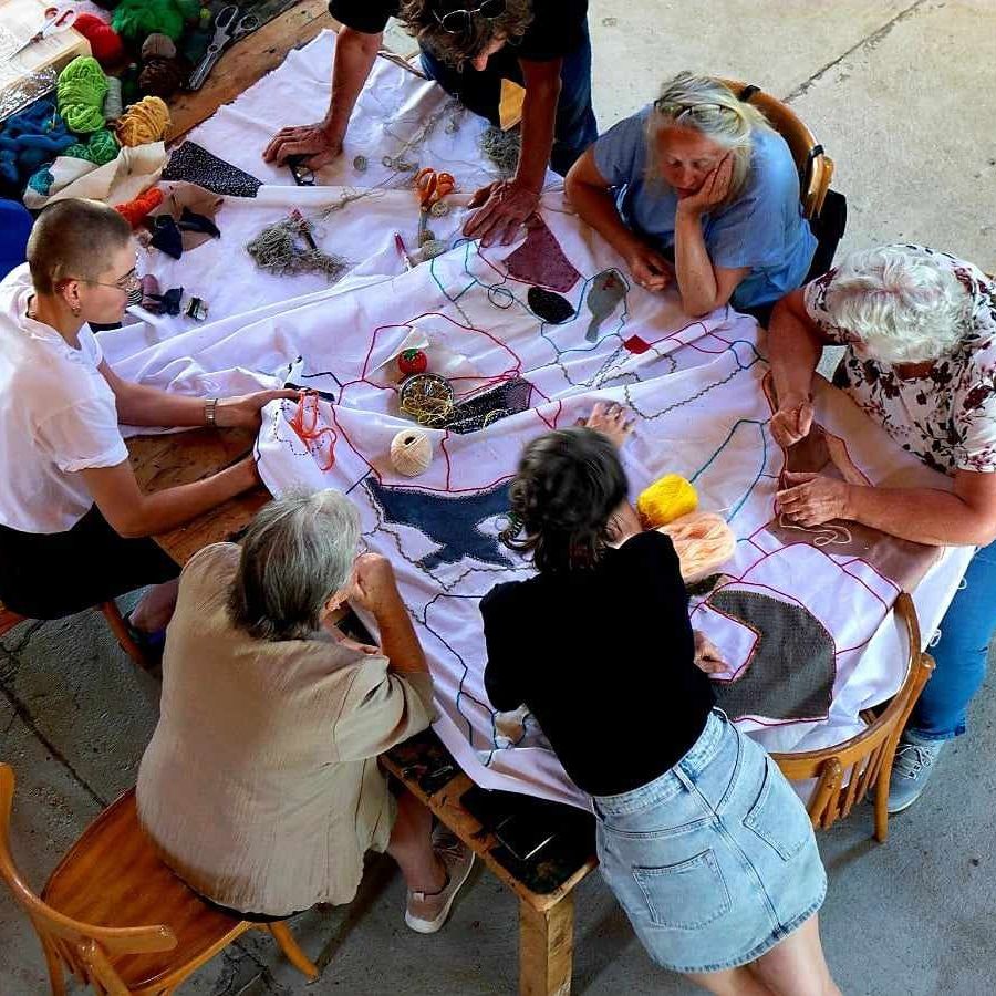 Ook eerdere projecten laten dit zien: in Geboortegrond (2022) werkten buurtbewoners samen aan een geborduurde landkaart van hun geboortegrond; in Geboortedeken (2022) werd een patchwork voor een ongeboren kind gezamenlijk voltooid; en in Stil Leven (2023) droegen bezoekers dierbare herinneringsstukken bij die samen een compositie van verhalen en herinneringen vormden tijdens een solidair diner.
