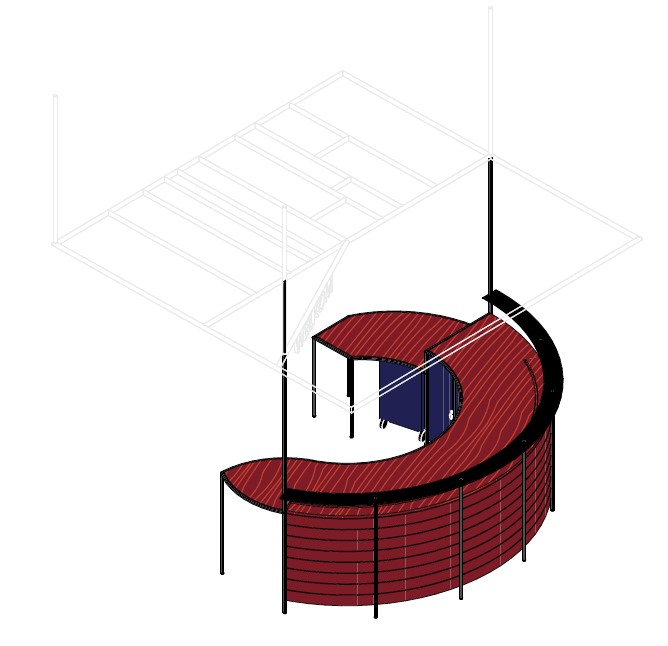 Isa: Absoluut. Elk element heeft een functie én draagt bij aan de beleving. De zwevende structuur integreert verlichting en signalisatie, zodat alles netjes samenkomt. Door vanaf het begin na te denken over rondingen, verhoudingen, materiaalkeuze en integratie van technieken, ontstaat een onthaalmeubel dat zowel praktisch als esthetisch coherent en uitnodigend is.